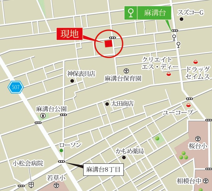 小田急小田原線『小田急相模原』駅までバスで約9分、バス停「麻溝台」停歩約4分